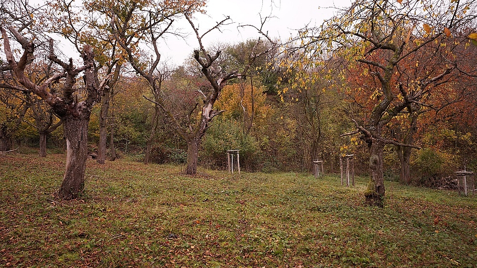 Die 1,8 Hektar große Streuobstwiese ist ein kleines Paradies für viele Tier- und Pflanzenarten – doch sie braucht unsere Hilfe. Brombeeren breiten sich aus, junge Bäume drängen auf die Streuobstwiese, und immer mehr alte Obstbäume verlieren ihre Äste. Deshalb heißt es: