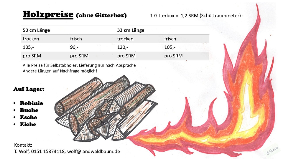 Alle Daten sind auf den Bildern zu entnehmen, bei Interesse bitte unter 01511 5874118 (LandWaldBaum - Tobias Wolf) melden, dann erfahrt ihr die Abholadresse und Infos, die ihr gern noch wissen möchtet. Anlieferung ist auf Nachfrage möglich, ansonsten gilt regulär die Abholung.
