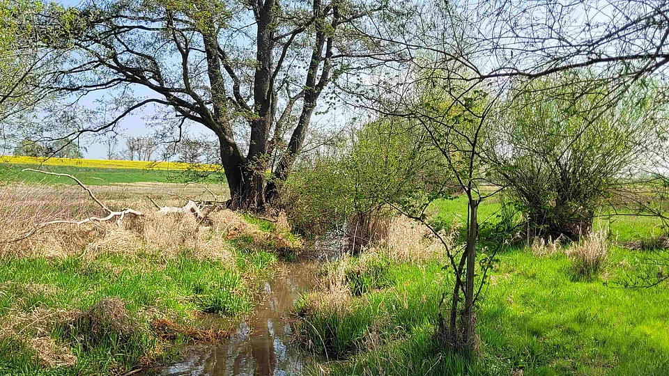 Nach einer kurzen thematischen Einführung erfolgt im Uferbereich des Grünen Mühlgrabens in der Gemeinde Elsnig das Pflanzen der Weidenstecklinge, jeweils abwechselnd auf beiden Uferseiten.