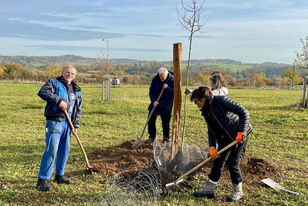 Am Samstag, dem 1. November wimmelte es auf der Streuobstwiese wieder – von mehr als 50 fleißigen Mitgliedern und Helfern der BI, die gekommen waren, um 24 Obstbäume zu pflanzen, unter ihnen ganze Familien mit ihren Kindern. Dabei waren auch wieder der Bürgermeister der Gemeinde Weischlitz, Steffen Raab und die ehemalige stellvertretende Bundestagspräsidentin Yvonne Magwas. Besonders freuten wir uns auch über den Einsatz von Helfern einer Geocacher Gruppe aus dem Vogtland, Zwickau und Zeulenroda.